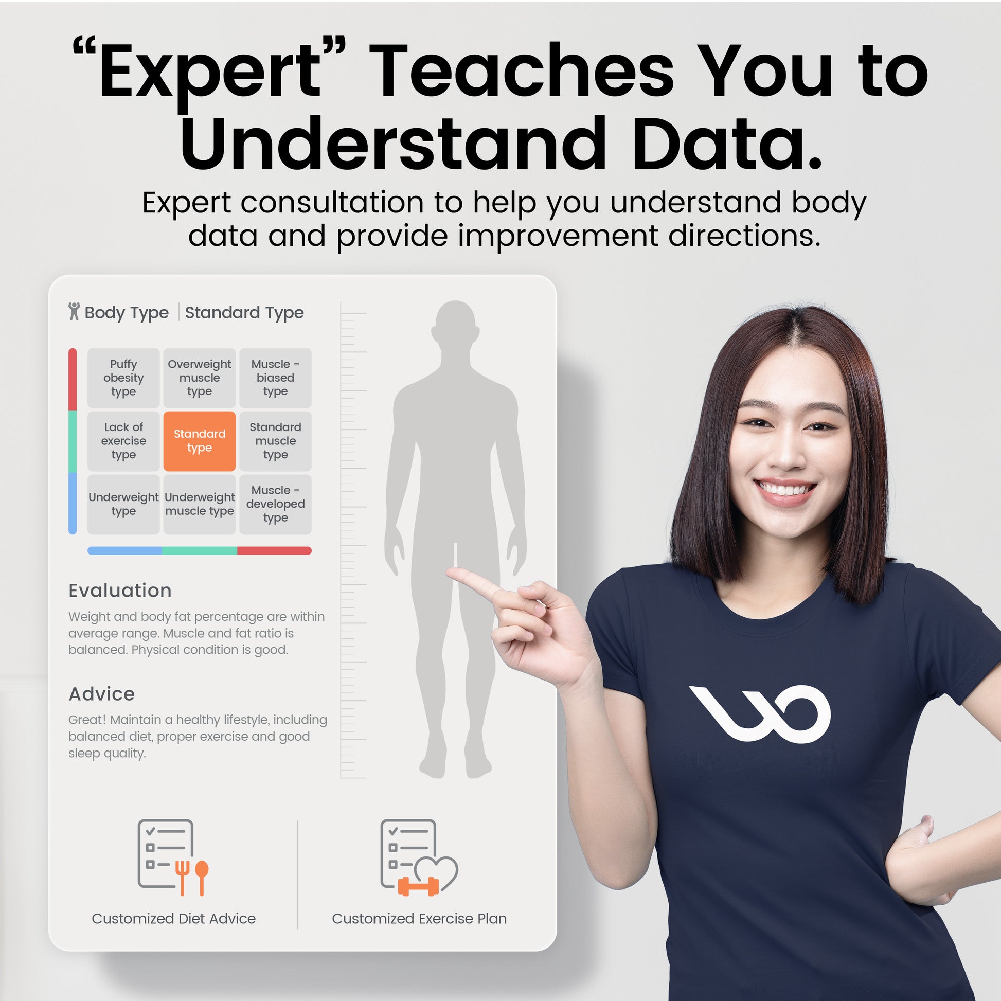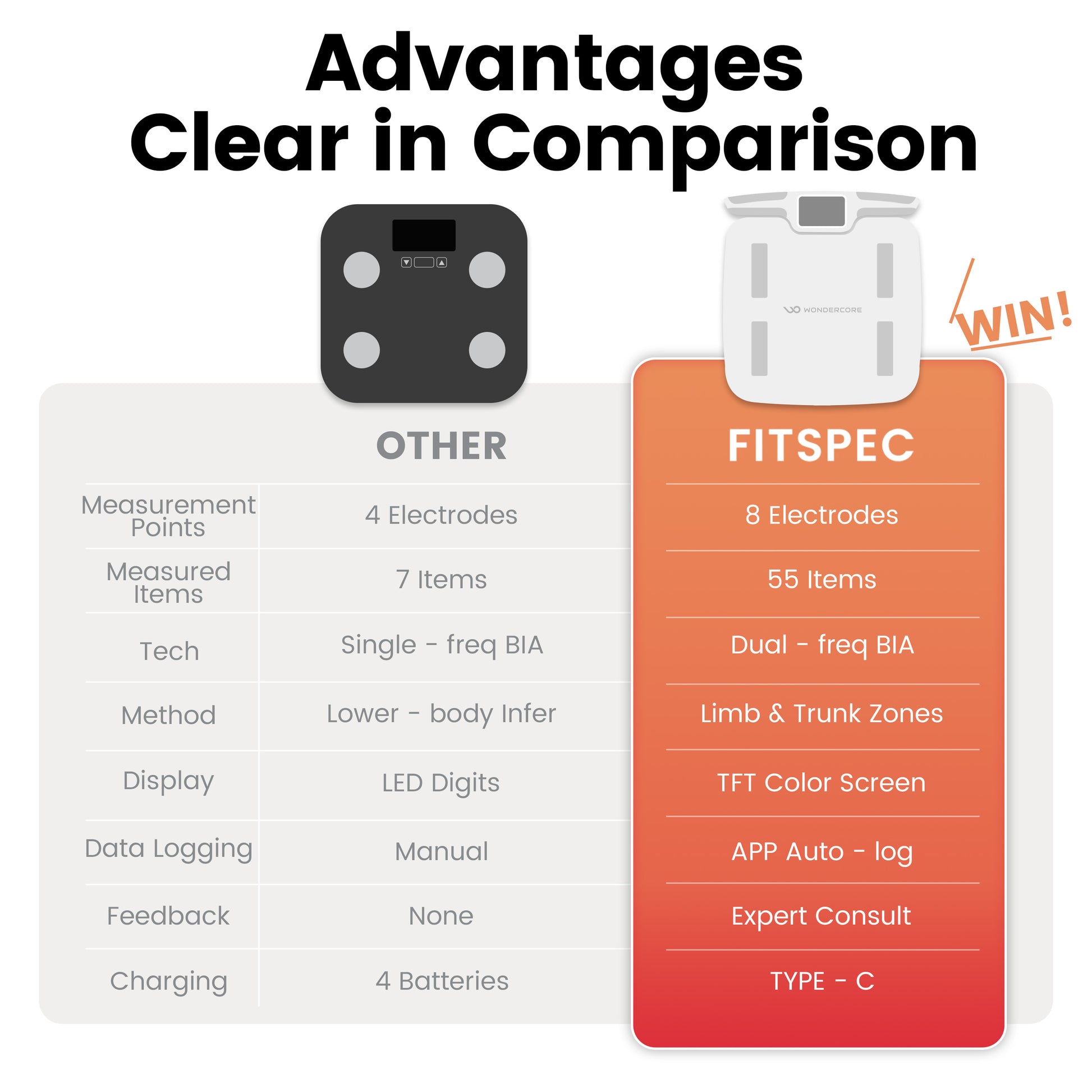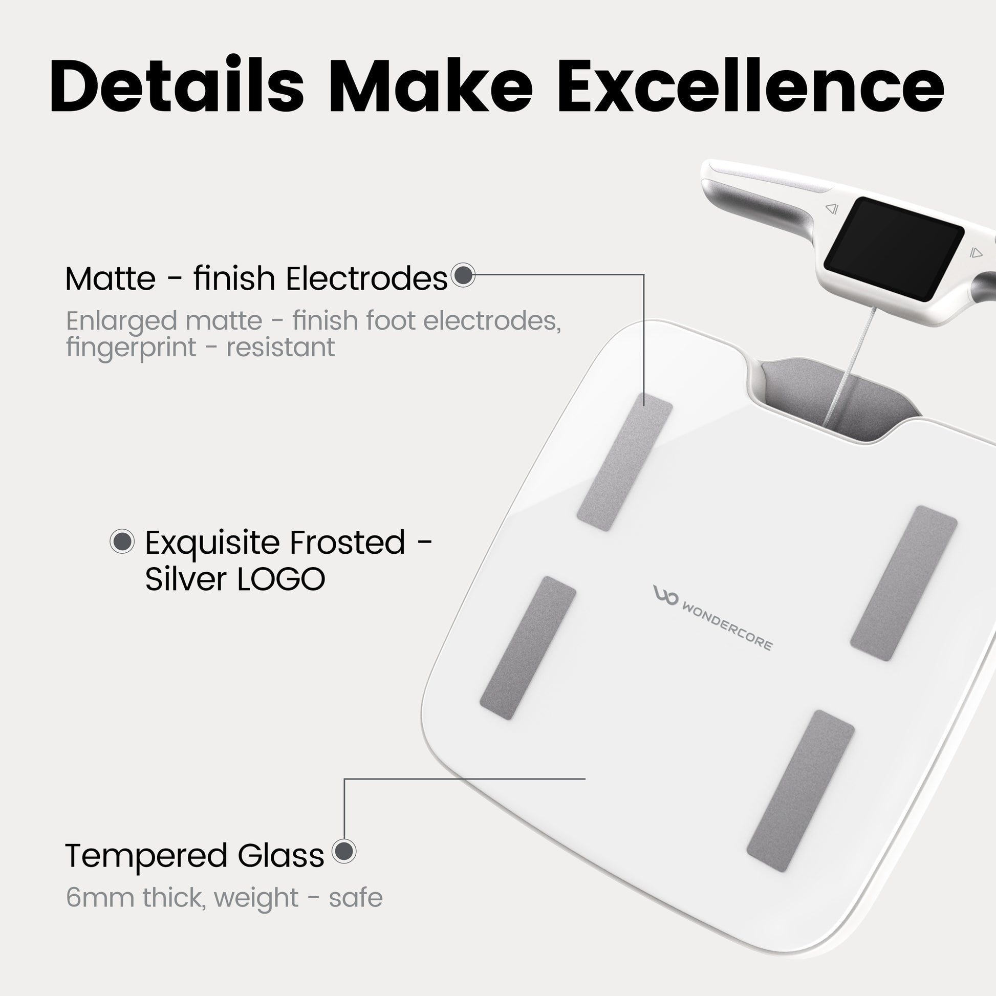 Comprehensive analysis of key body metrics through multi-point electrodes.