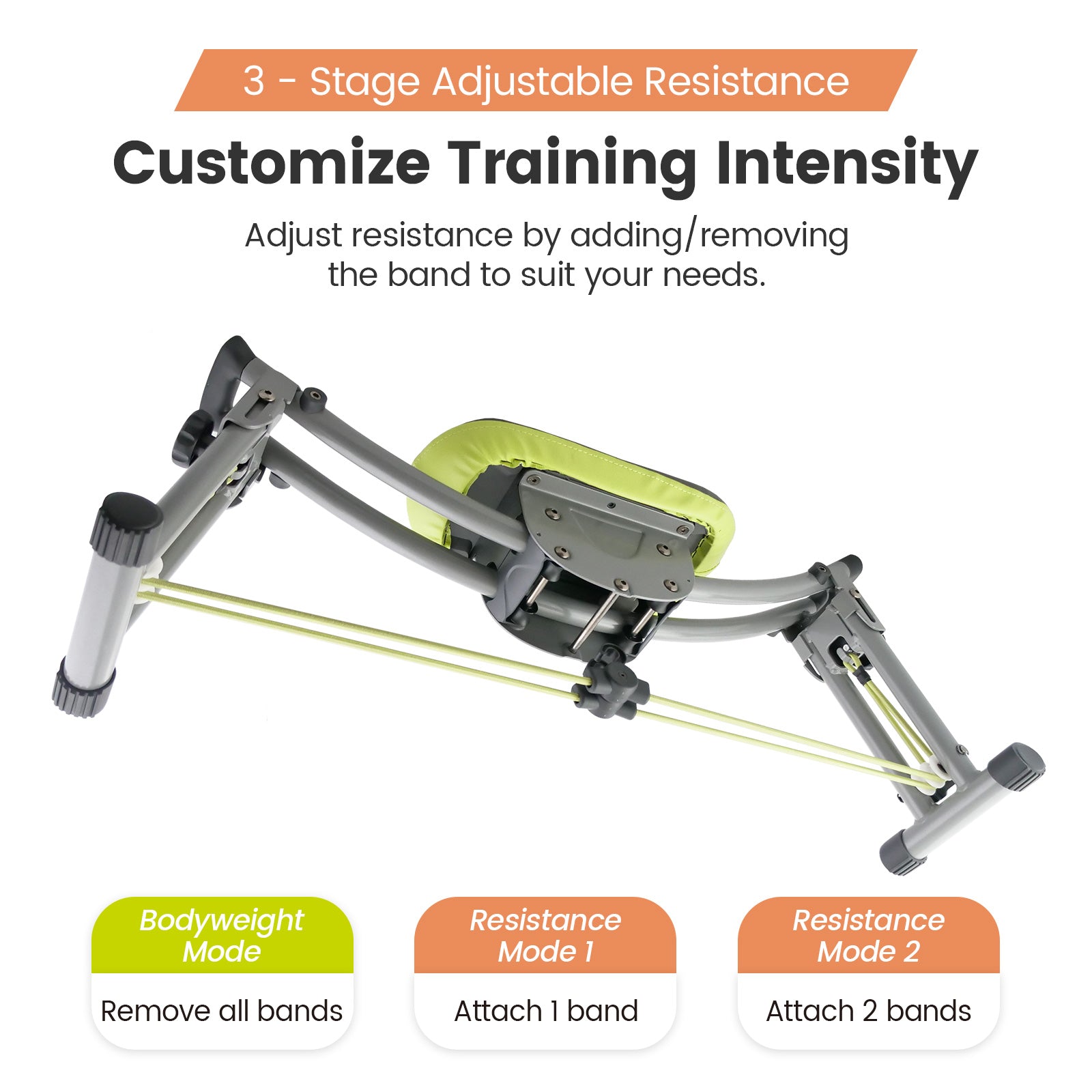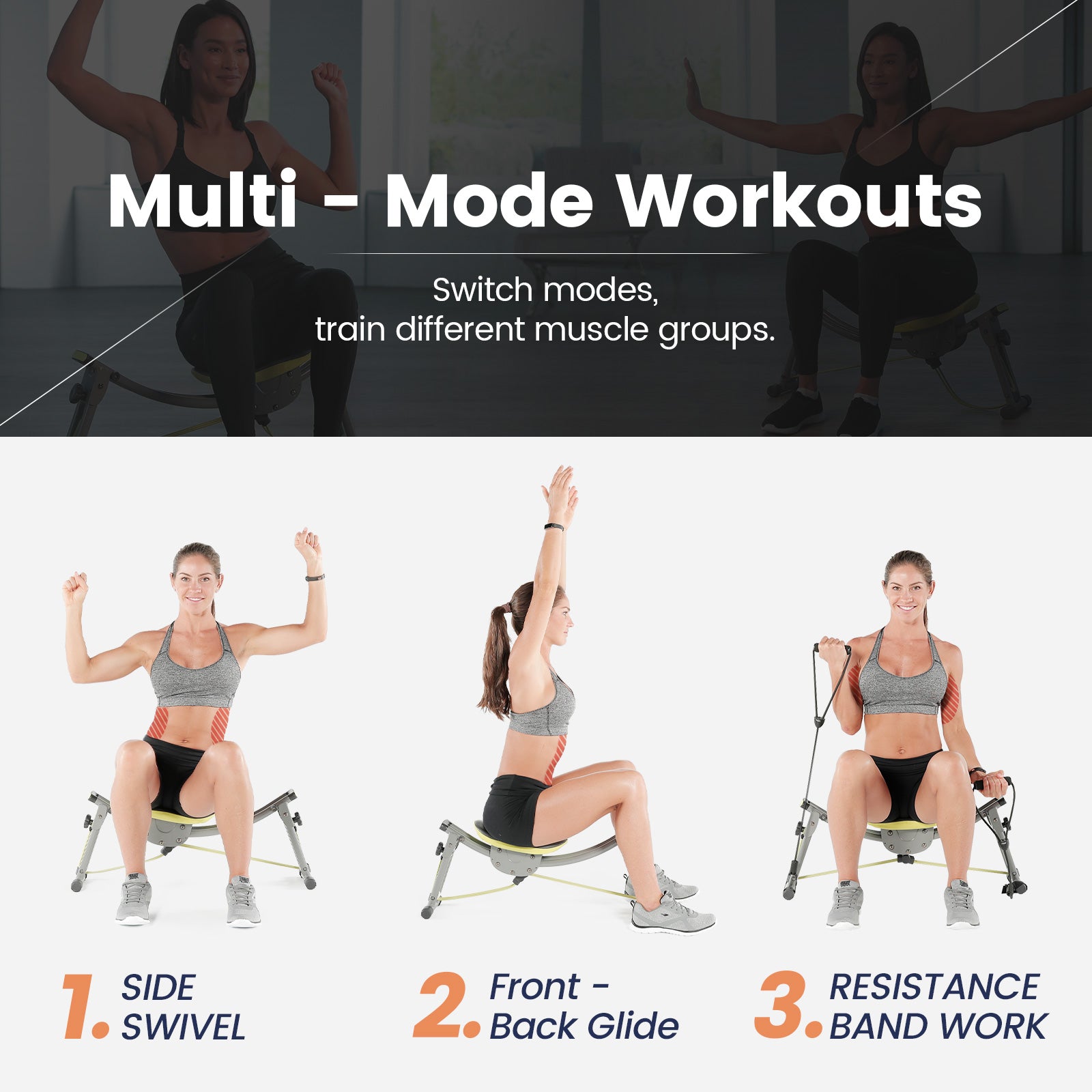 💪 Resistance Band Integration: Extra 2 exercise bands provide additional challenge and resistance for an intense full-body workout. Great for toning your arms,shoulders, chest, gluts, legs etc.There are two hook resistance ropes under the seat. You can choose the number of resistance ropes to adjust 3- level resistance to fit your own workout pace. Switch freely between multiple training modes to work different muscle groups and increase lower body core muscle.