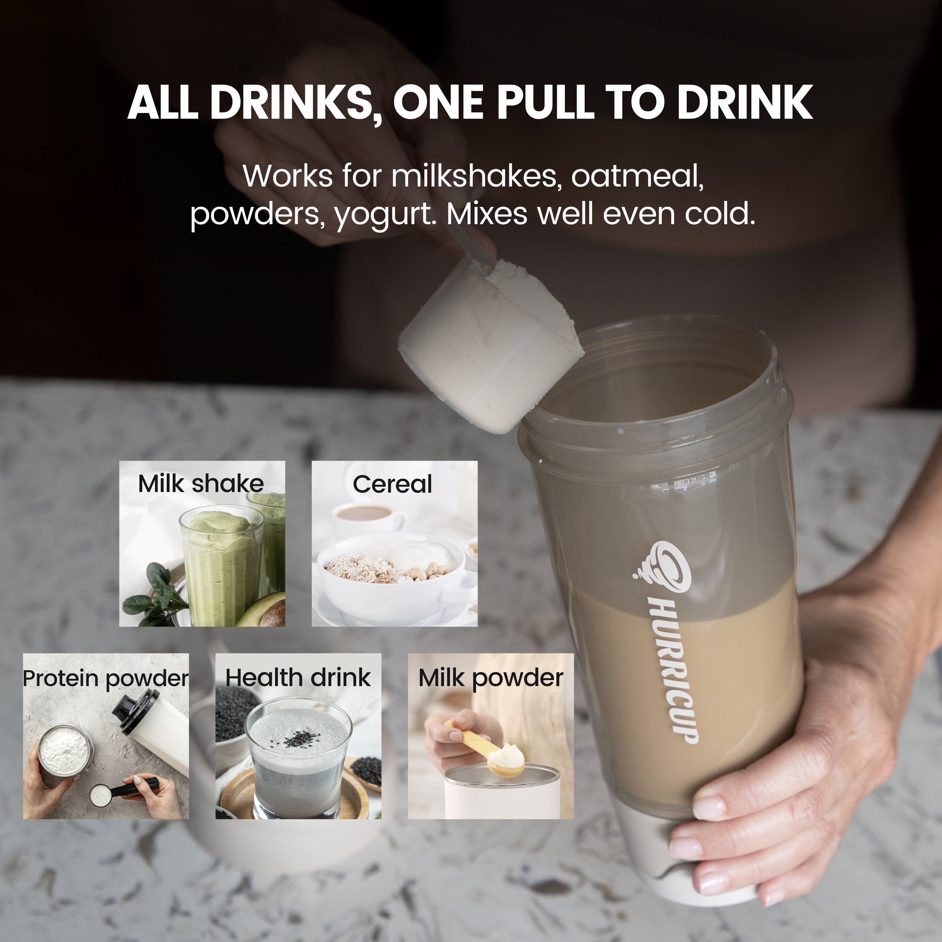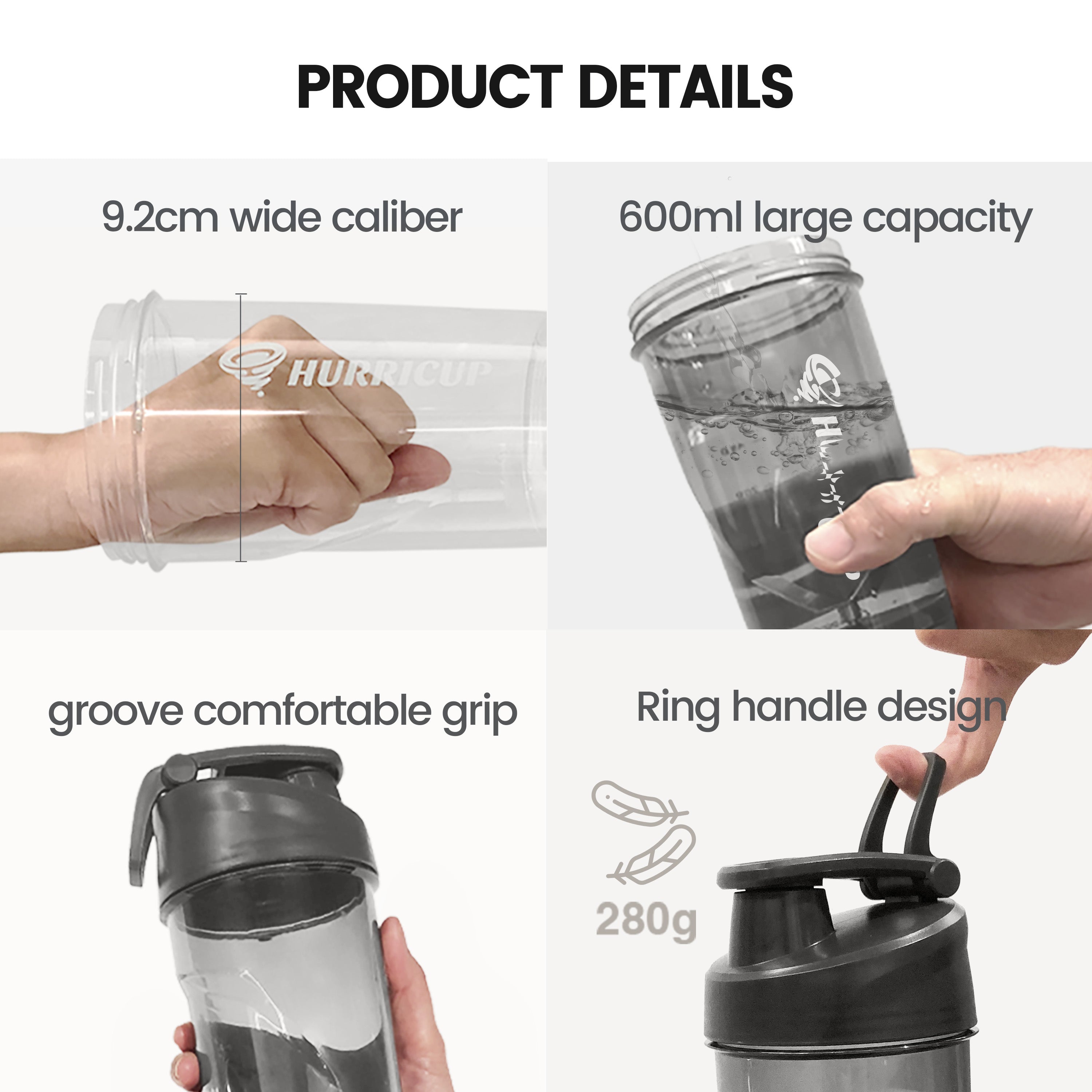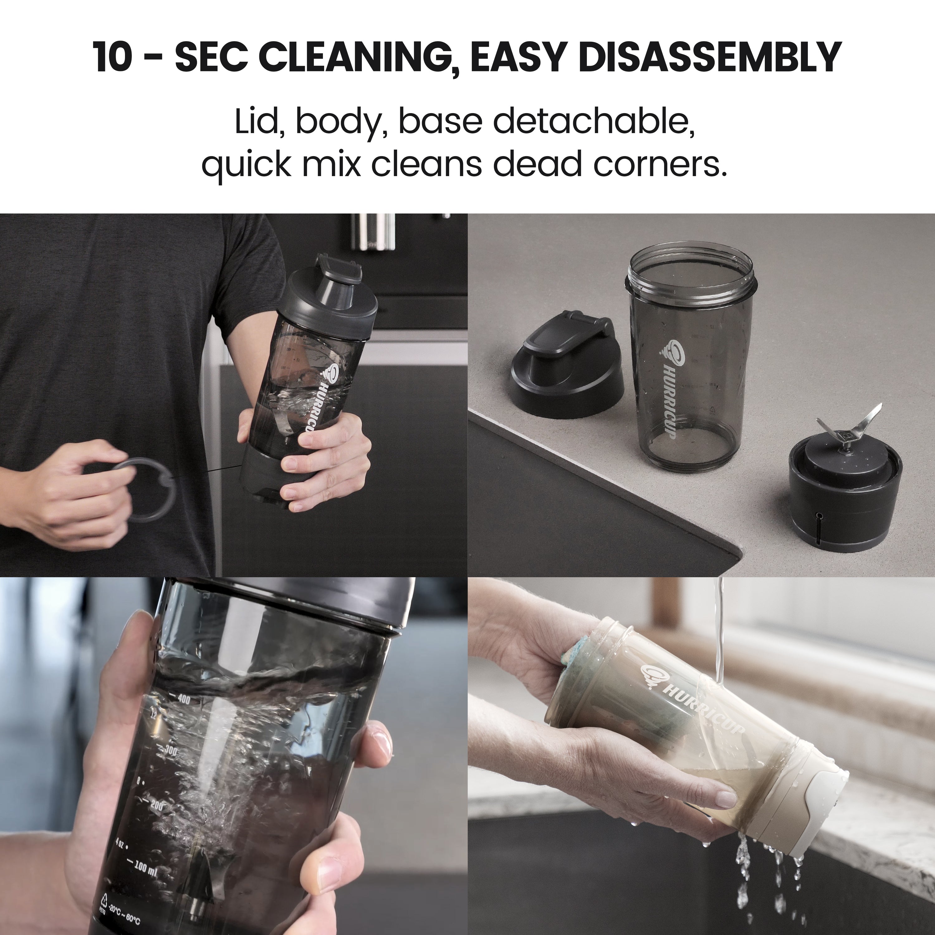 💪 Ultra-Hygienic & Easy to Clean: The Hurricup protein shake blender can be disassembled for thorough cleaning. Just add water, pull and reel to rinse all corners. You can add detergent if necessary.and will not produce odor after long-term use.