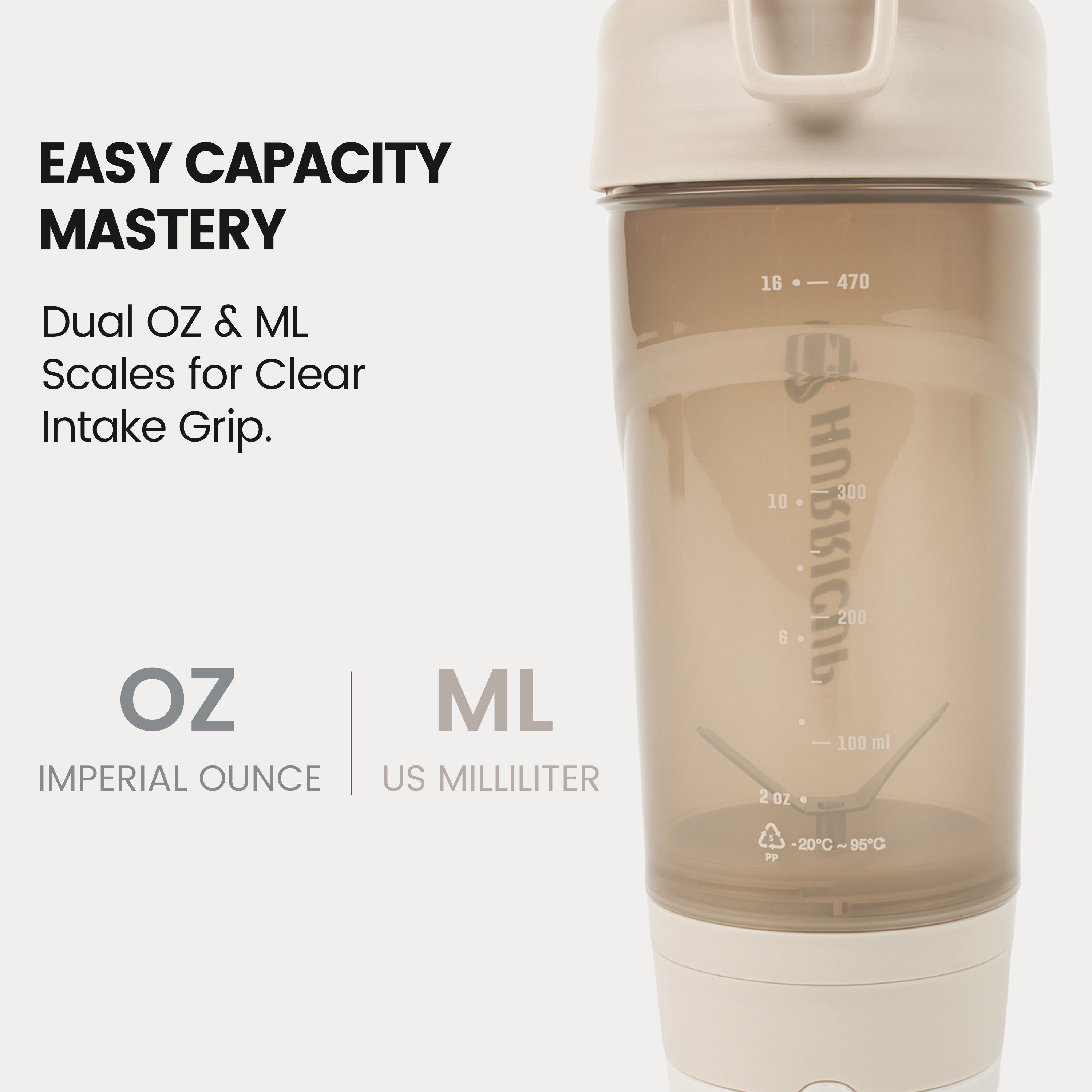 💪 Humanity Design: Wide mouth of the shaker bottle makes it easy to add mix scoops and liquids. Its lid locking mechanism prevents the cap piece from getting in the way when drinking from the shaker cup.Ergonomic carry loop lets you hold more when your hands are full, as well as offering a perfect spot to attach your keys. Moreover, it doubles as a versatile container for other liquids like water, juice, coffee and sports drinks. It's the ultimate fitness gift for gym lovers.