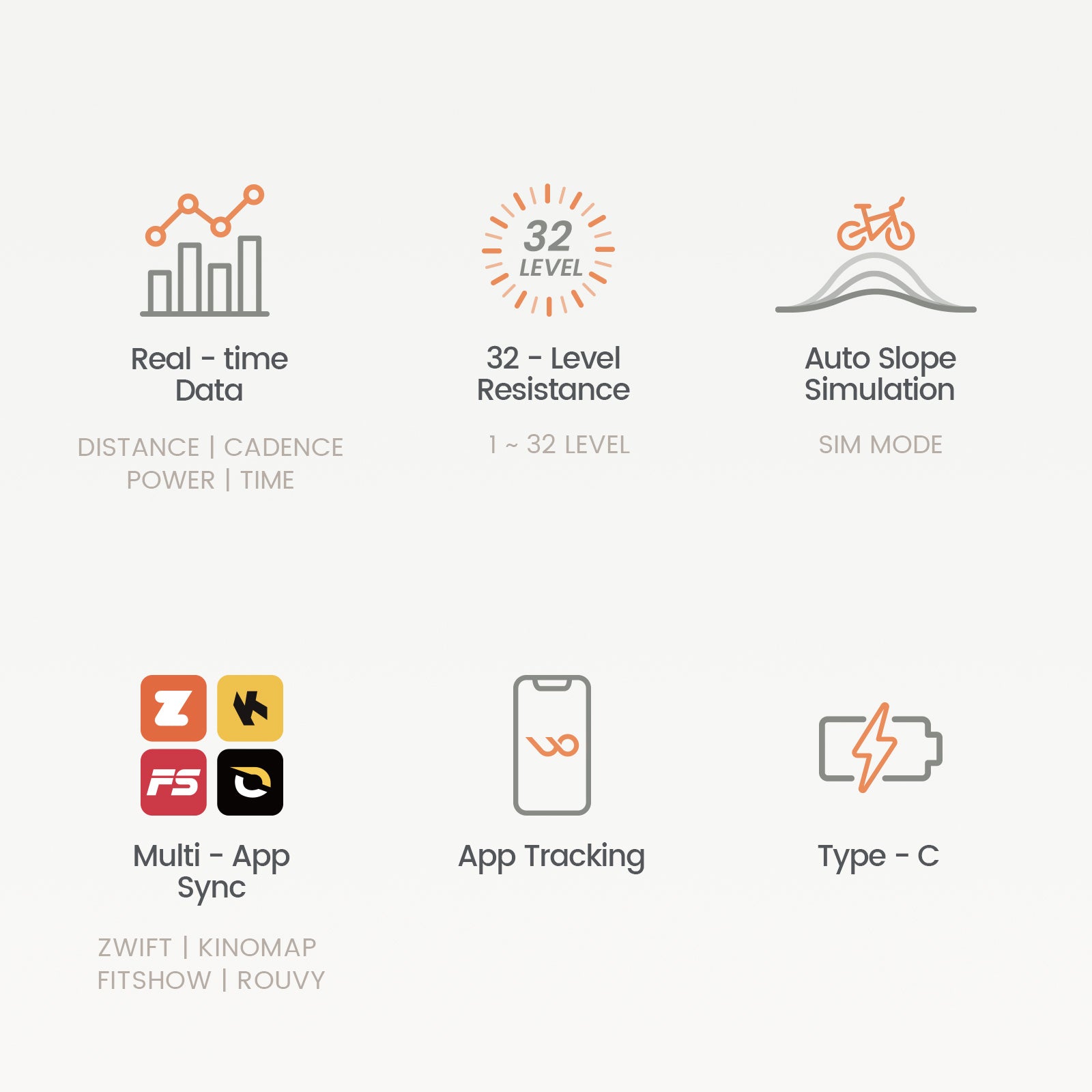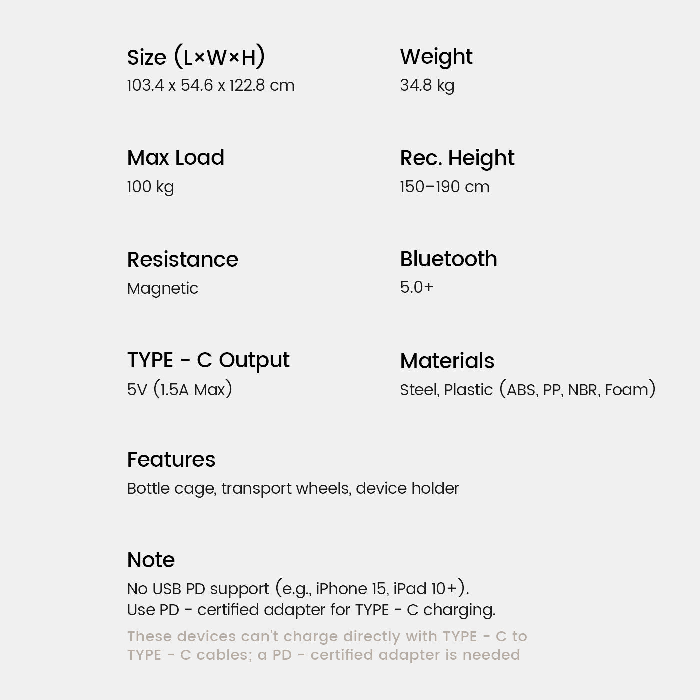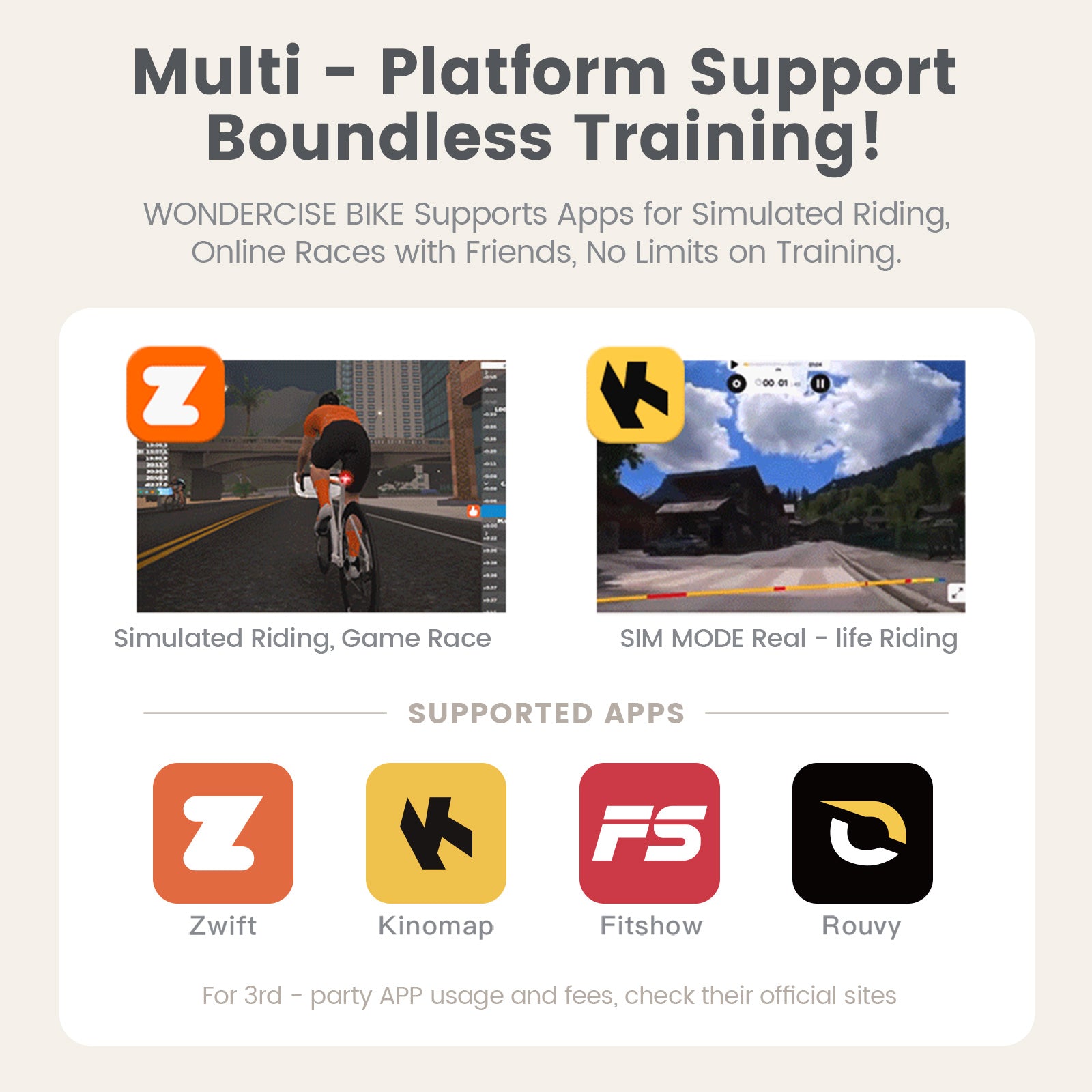 - Works with Third-Party Apps: Connect via Bluetooth to popular apps like Zwift, Kinomap, Fitshow, and Rouvy (subscriptions required) for more training variety.