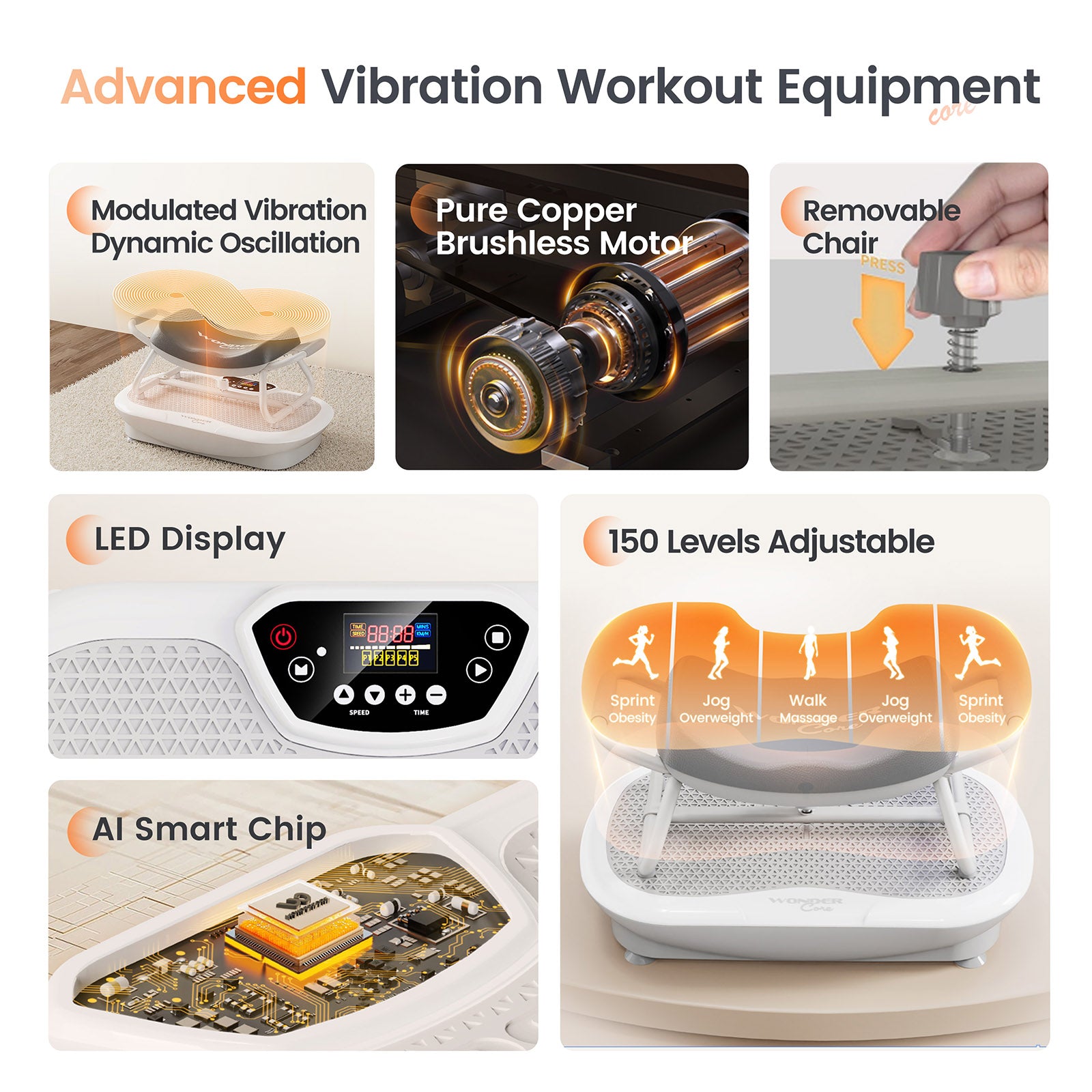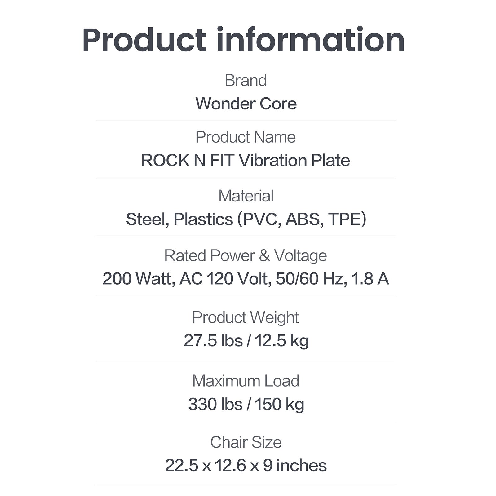 WONDER CORE Rock N Fit, Vibration Plate, Ab Workout Equipment & Exercise Chair, Whole Body Vibration Platform for Toning & Slimming, Ab Core Trainer, Fitness Equipment for Home Gym
